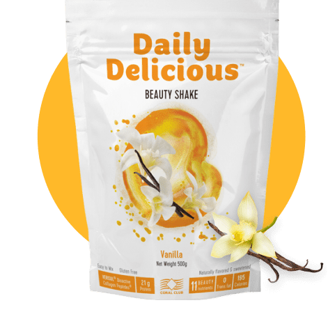 A Daily Delicious Beauty Shake a kollagén innovatív formáinak egyik vezető németországi gyártójától származó, Verisol® márkanév alatt forgalmazott kollagén peptideket tartalmazza.